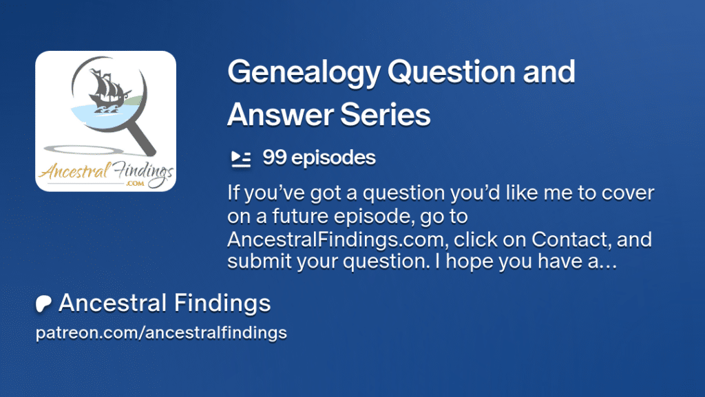 Some genealogy questions are answered in depth on my Patreon-exclusive Q&A podcast (with permission). These are longer, more detailed discussions available to supporters.