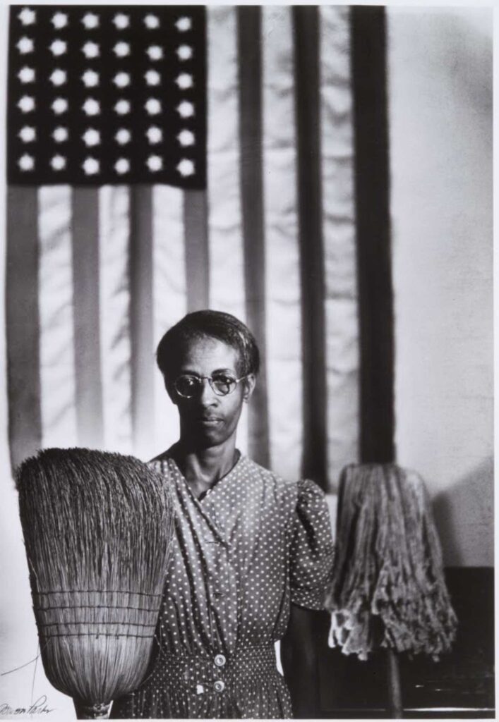 Gordon Parks, one of the first African American photographers hired by the FSA, brought a unique perspective to his work. In his famous photo “American Gothic, Washington, D.C.,” Parks captured a Black cleaning woman standing with a mop and broom before an American flag, a striking commentary on racial inequality in the nation’s capital. His work urged viewers to confront social injustice, pushing the boundaries of photography as a medium for social change.